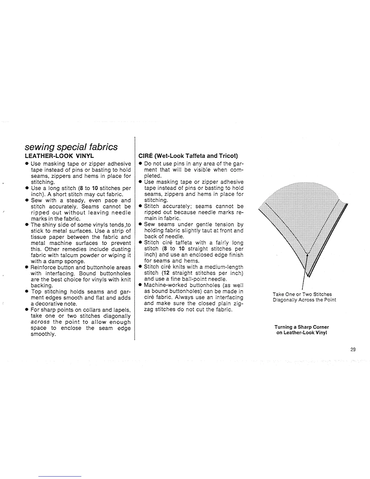 Singer 362 - Sewing Special Fabrics; Tips for Vinyl, Ciré, and Deep-Pile Fabrics