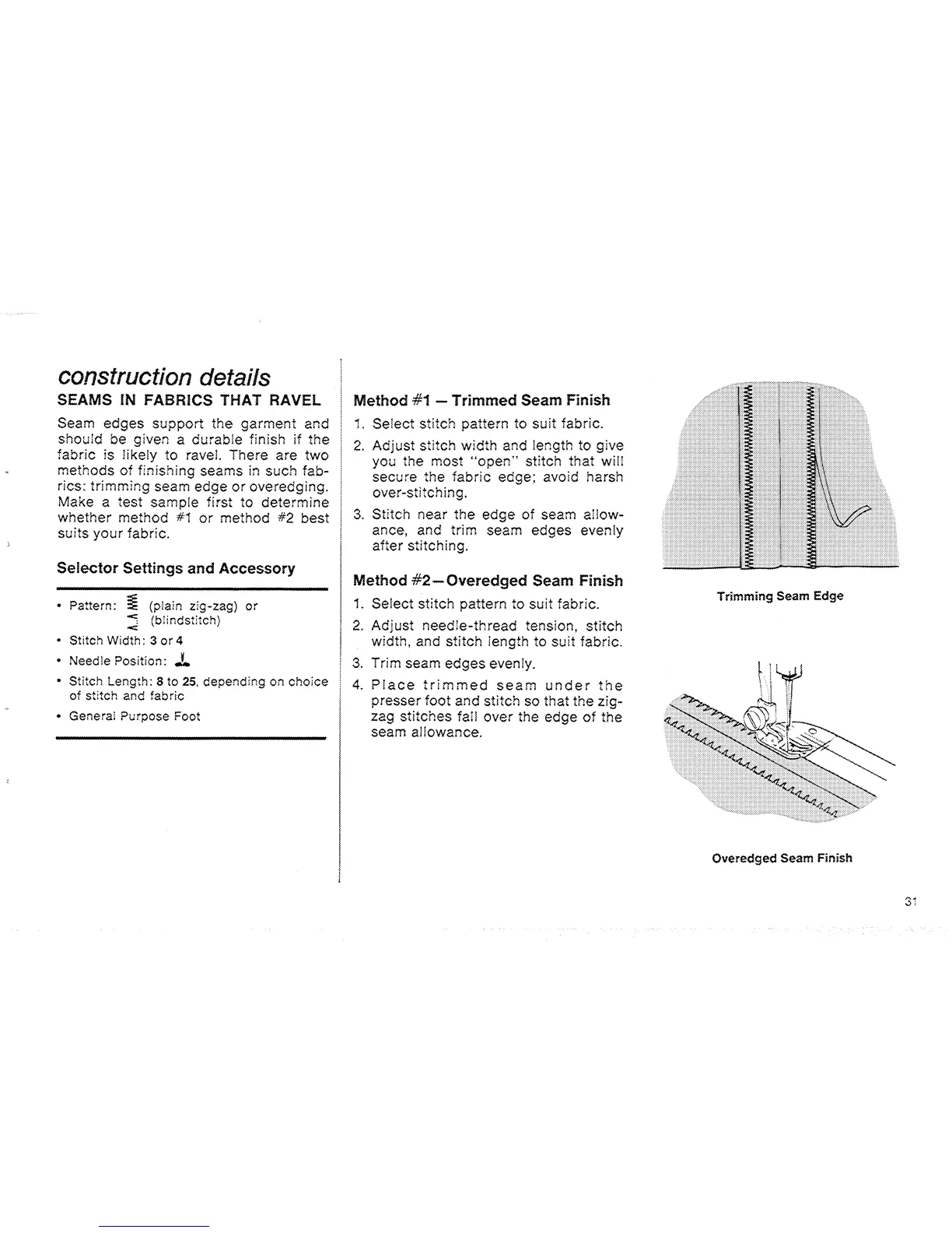Singer 362 - Construction Details; Seams in Fabrics that Ravel; Trimmed;Overedged Seam Finish