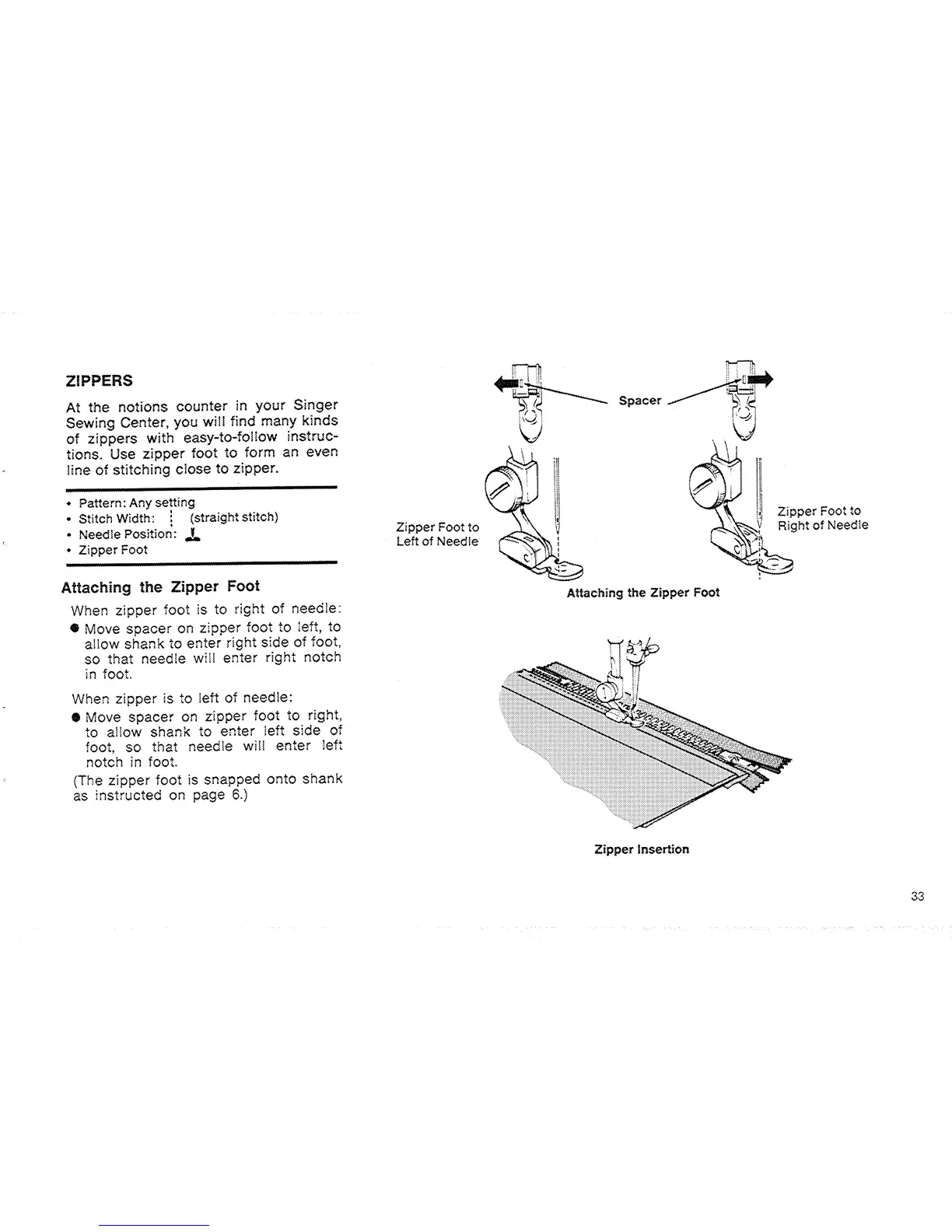 Singer 362 - Zippers; Attaching and Using the Zipper Foot