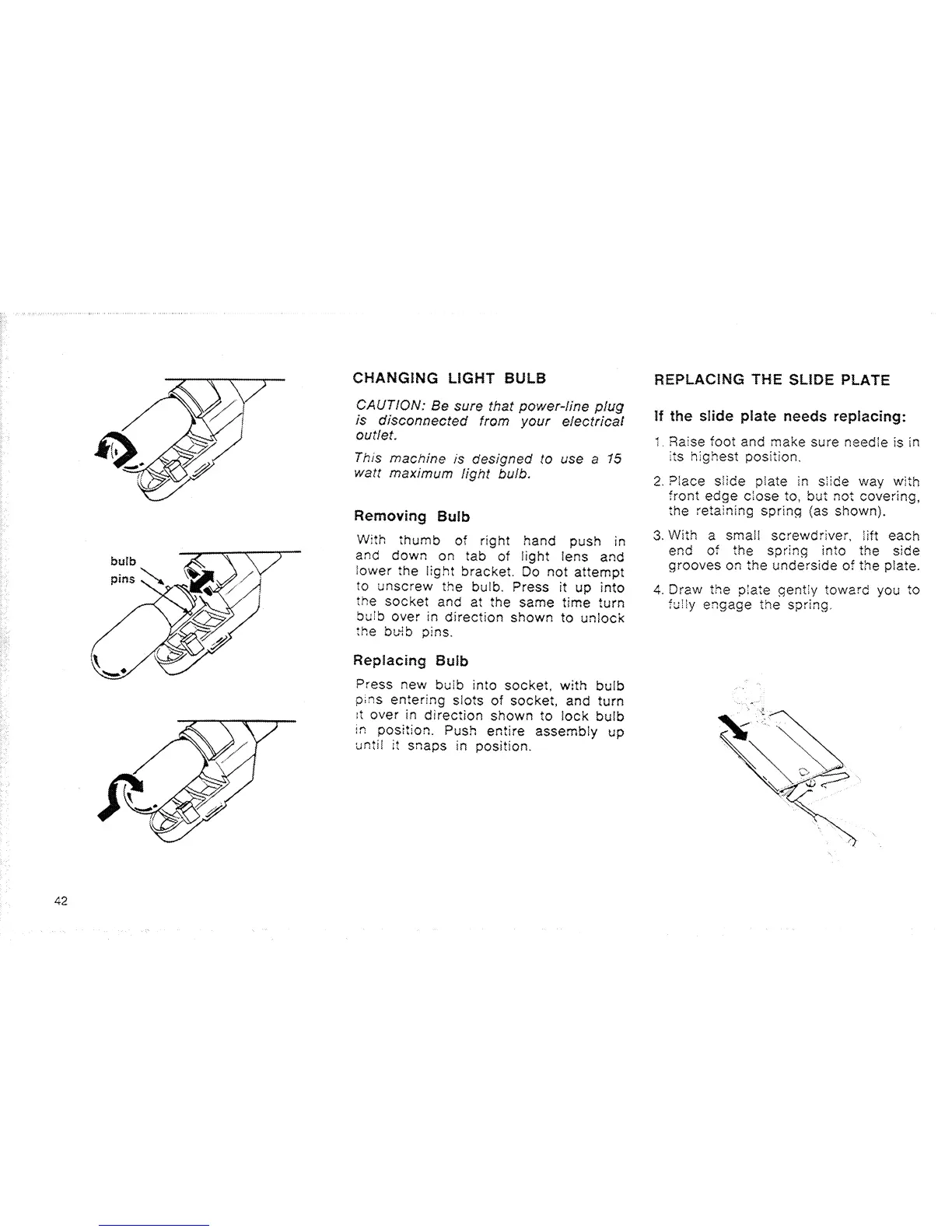 Singer 362 - Removing;Replacing Bulb; Replacing the Slide Plate
