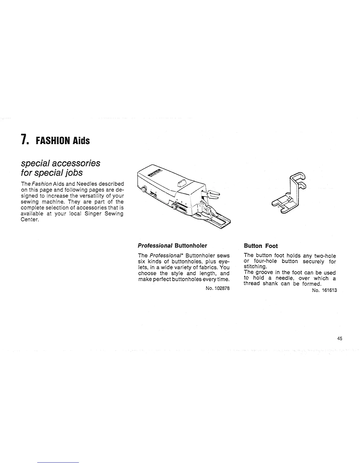 Singer 362 - Special Accessories for Special Jobs; Professional Buttonholer; Button Foot