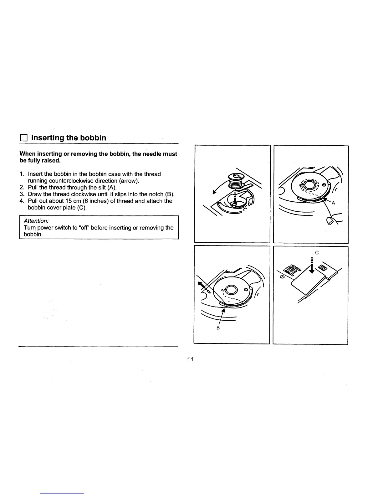 Singer 3709 - Inserting the Bobbin; Bobbin Insertion Safety