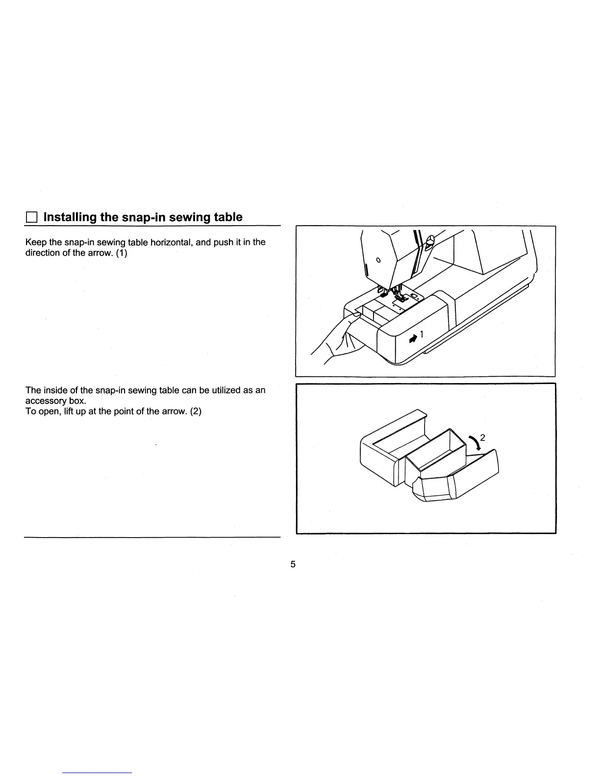 Singer 3722 - Initial Setup; Installing the Snap-in Sewing Table