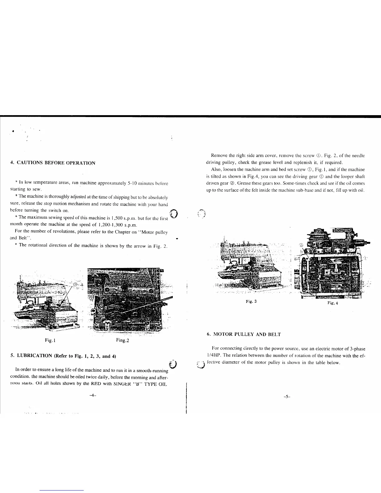 Singer 375B1 - Cautions Before Operation; Initial Machine Operation Guidelines; Machine Rotation and Lubrication Checks; Lubrication Procedures