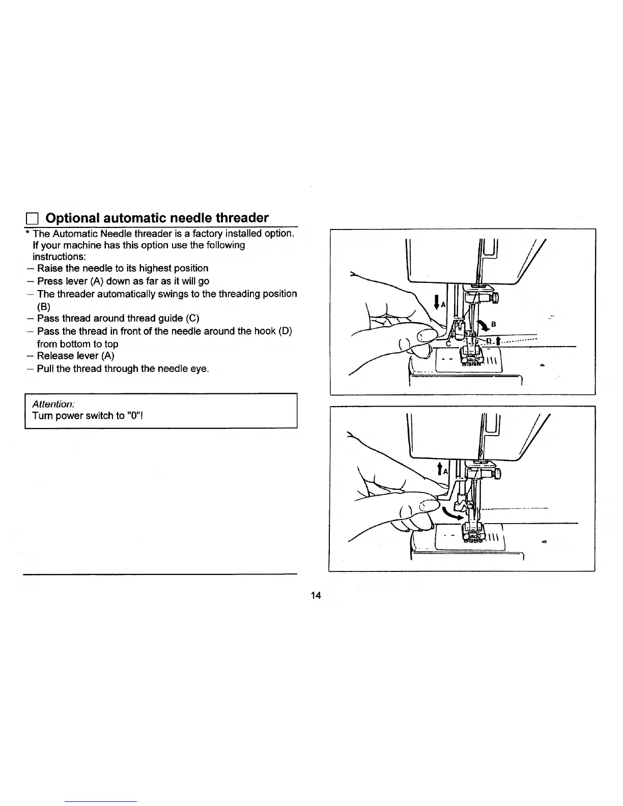 D Optional automatic needle threader