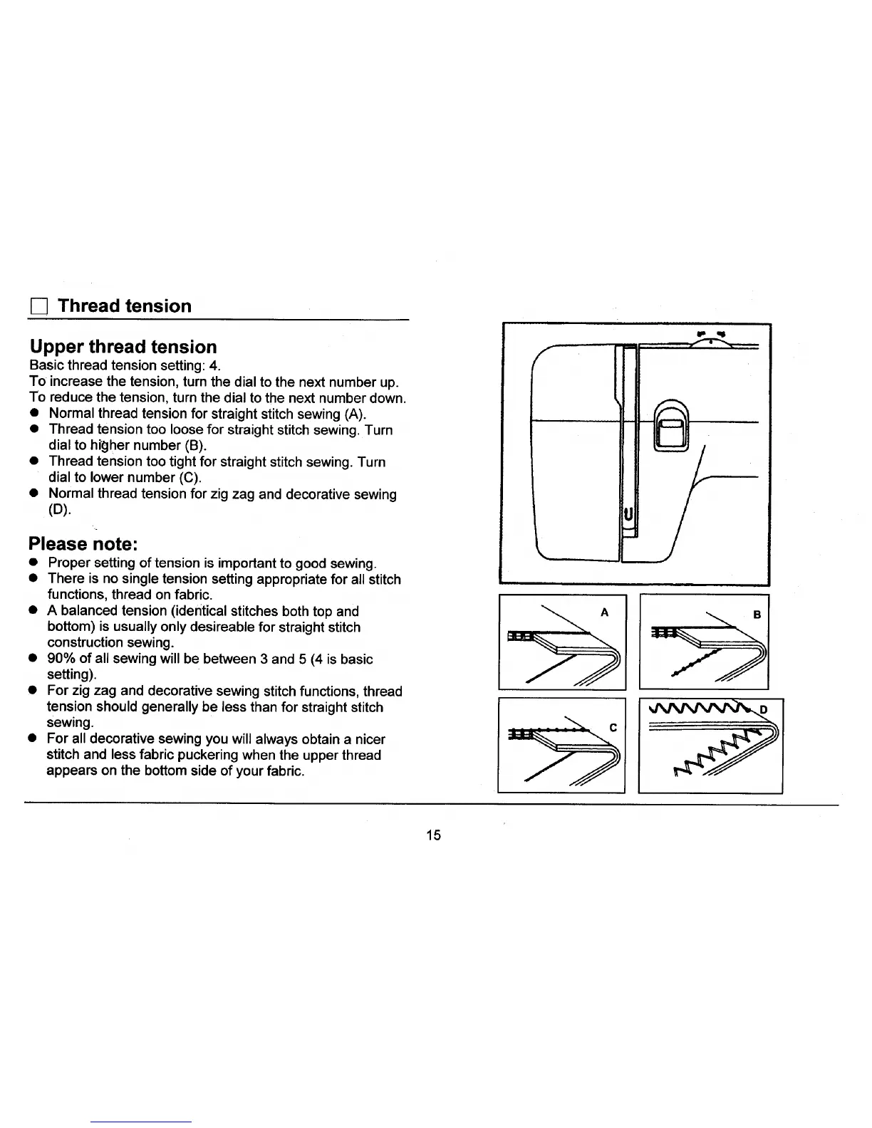 • Proper setting of tension is important to good sewing.