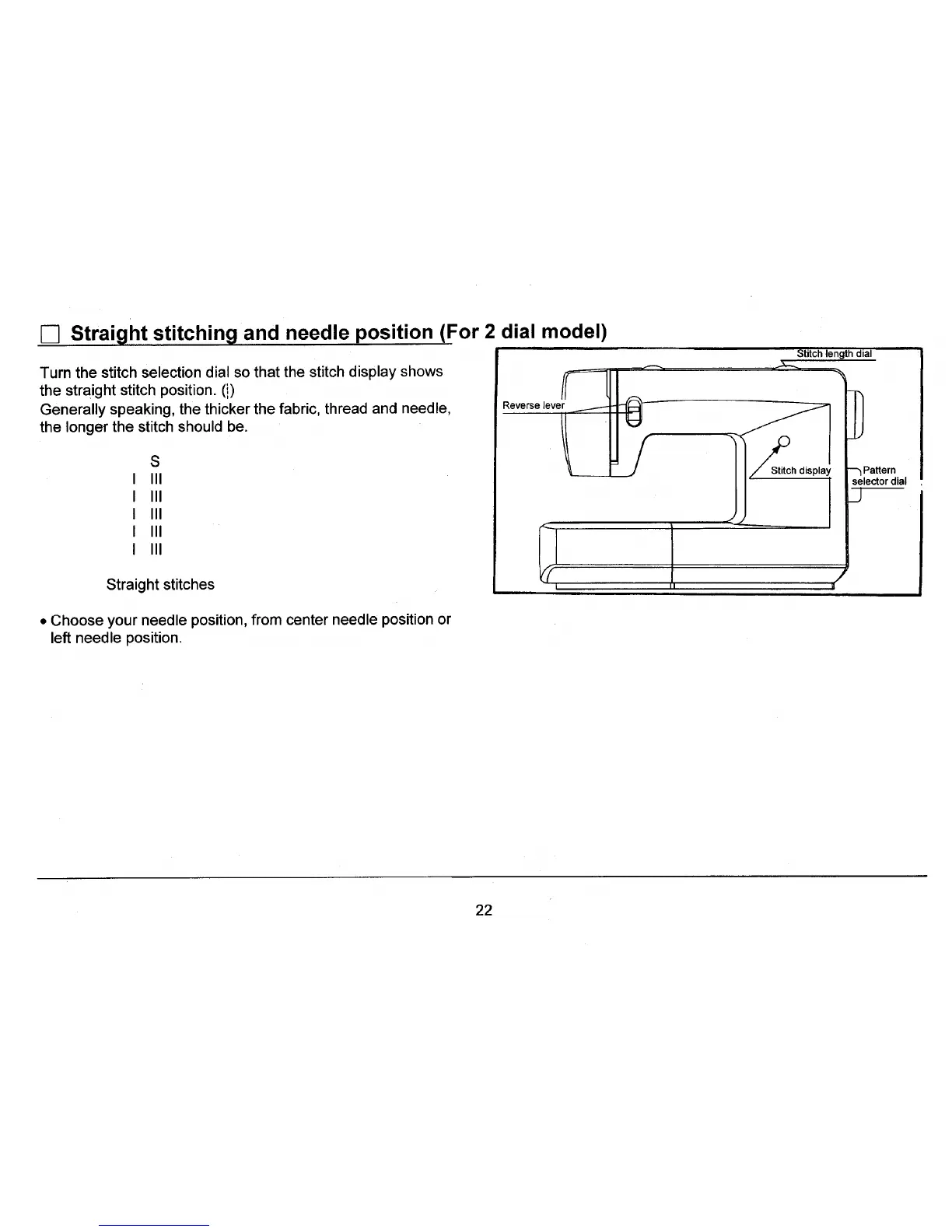 I--I Straight stitching and needle position (For 2 dial model)