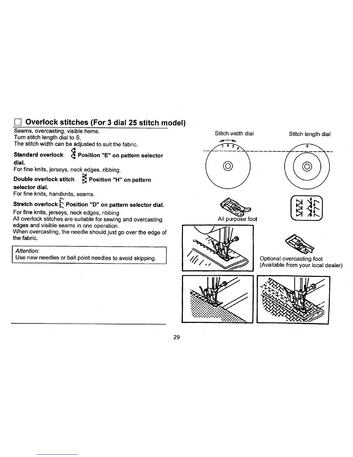 f-I Overlock stitches (For 3 dial 25 stitch model)