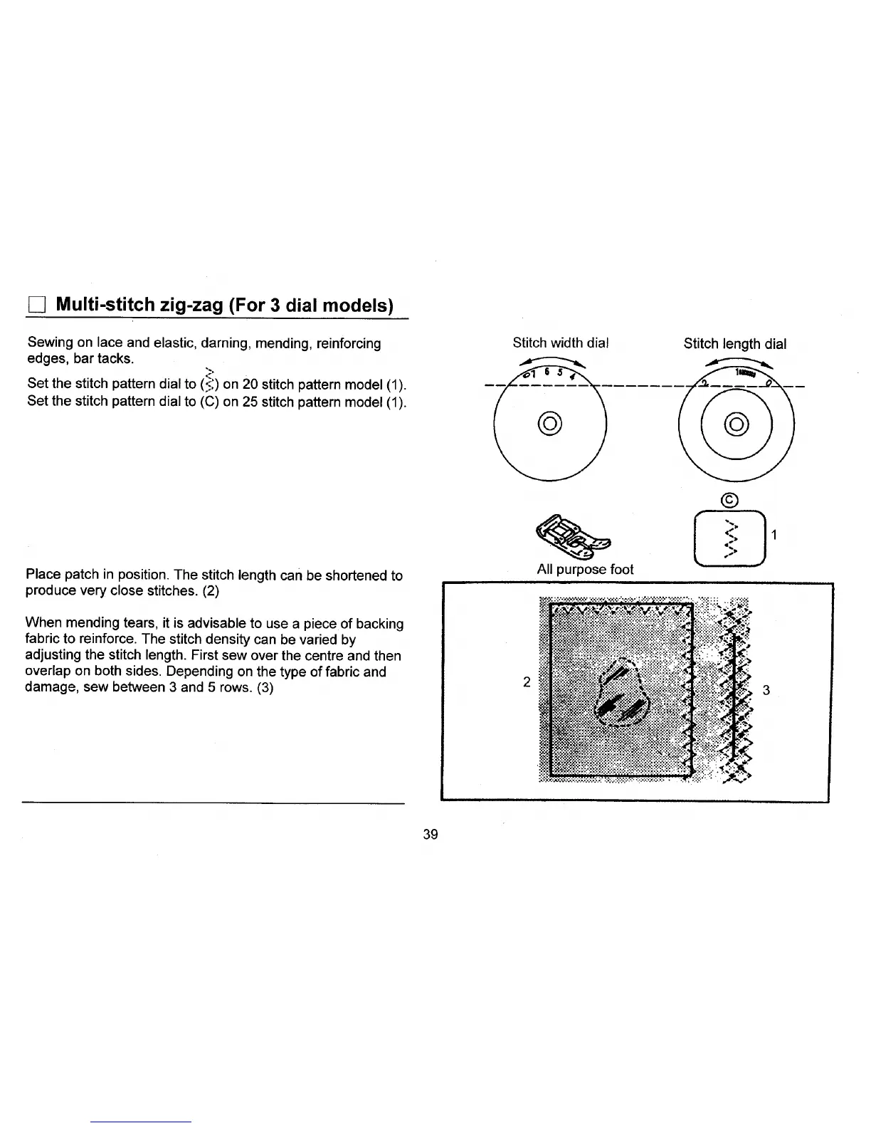 Set the stitch pattern dial to (C) on 25 stitch pattern model (1).