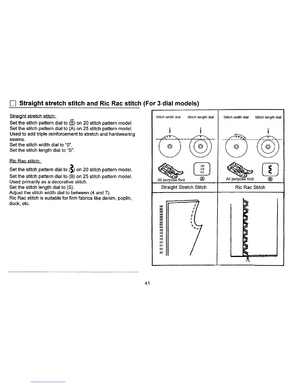 I--1Straight stretch stitch and Ric Rac stitch (For 3 dial models)