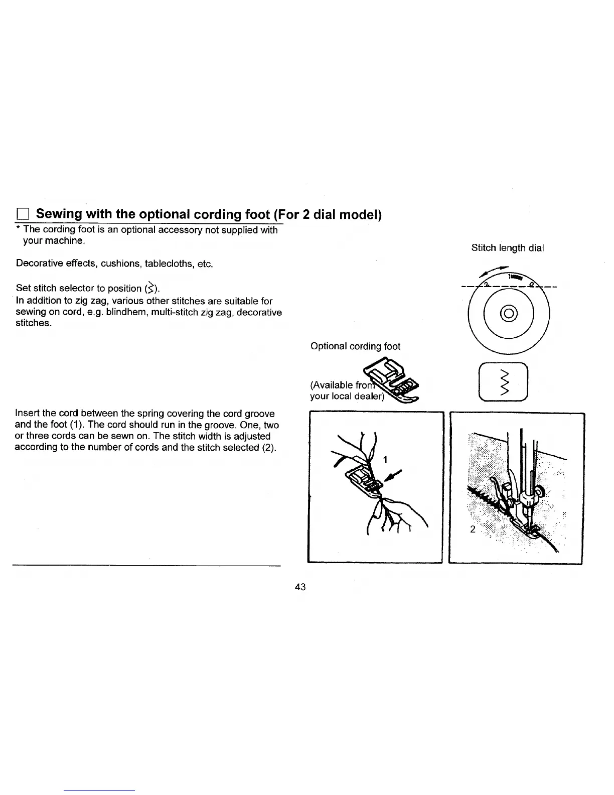 sewing on cord, e.g. blindhem, multi-stitch zig zag, decorative