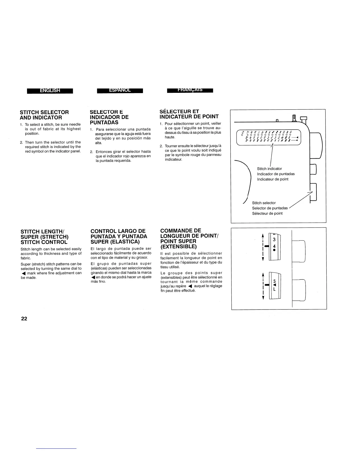 Singer 3962 - Stitch Selector and Indicator; Stitch Length;Super Stitch Control