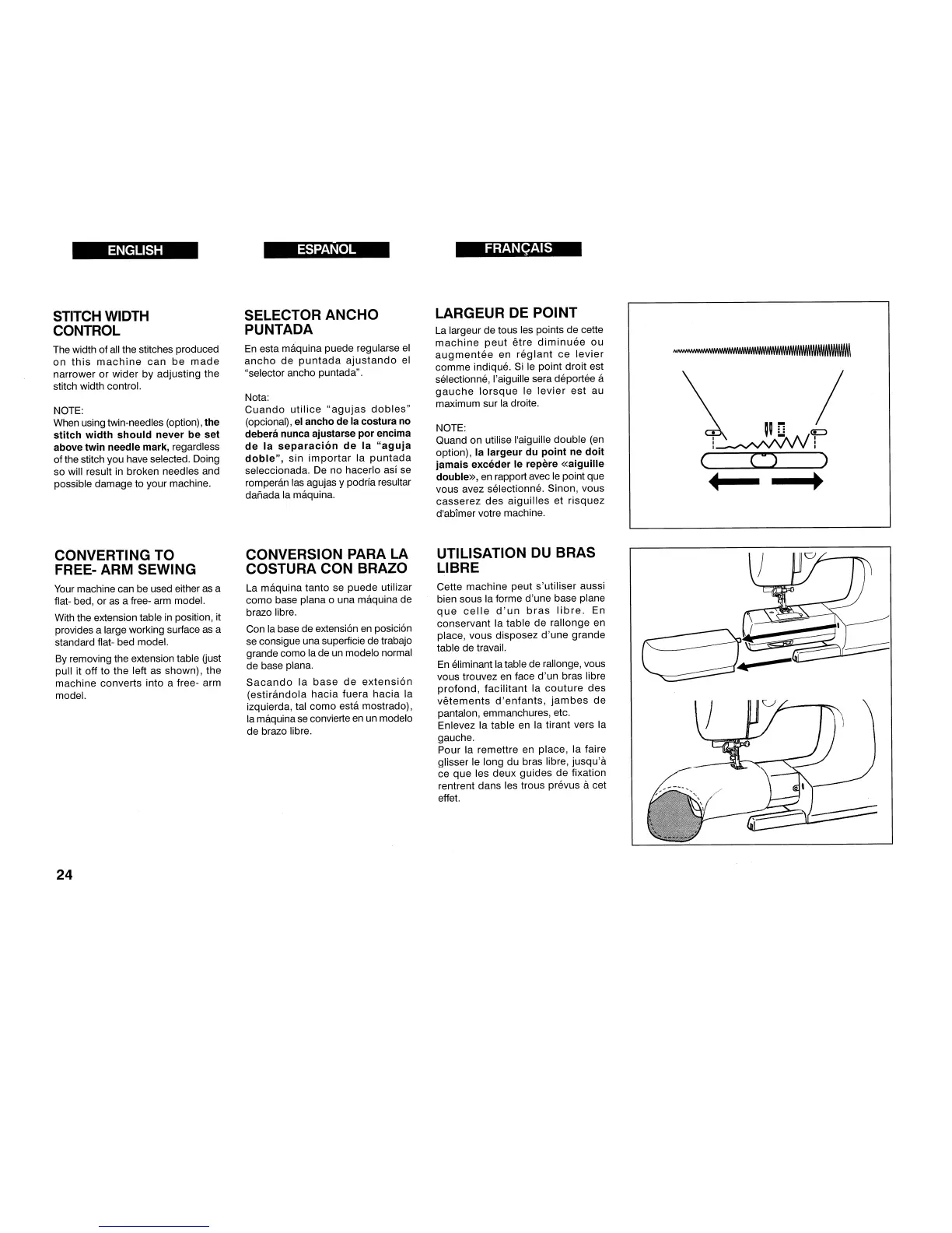 Singer 3962 - Stitch Width Control; Converting to Free-Arm Sewing