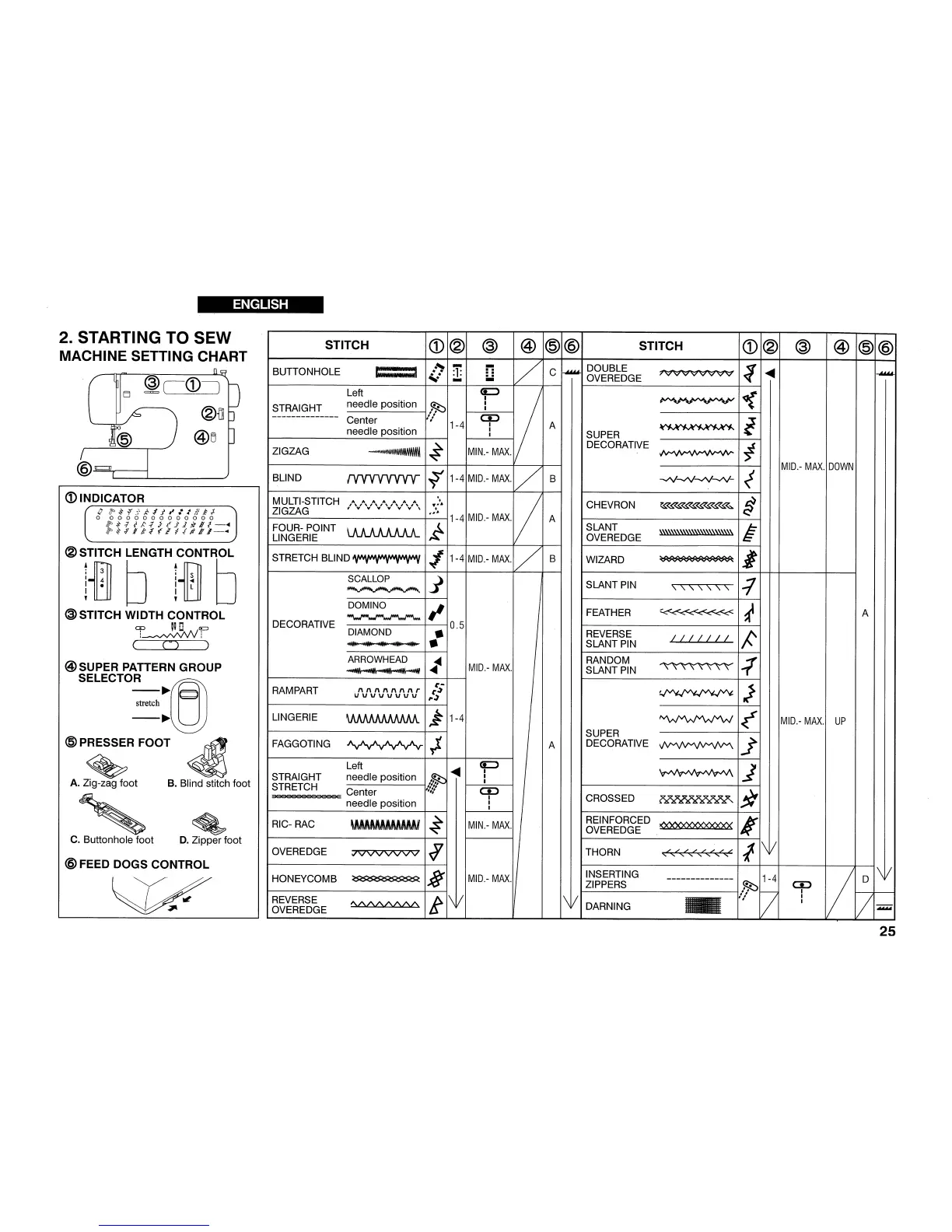 Singer 3962 - Sewing Machine Setting Chart Overview; Buttonhole and Straight Stitch Settings; Zigzag and Blind Stitch Settings; Decorative and Stretch Stitch Settings
