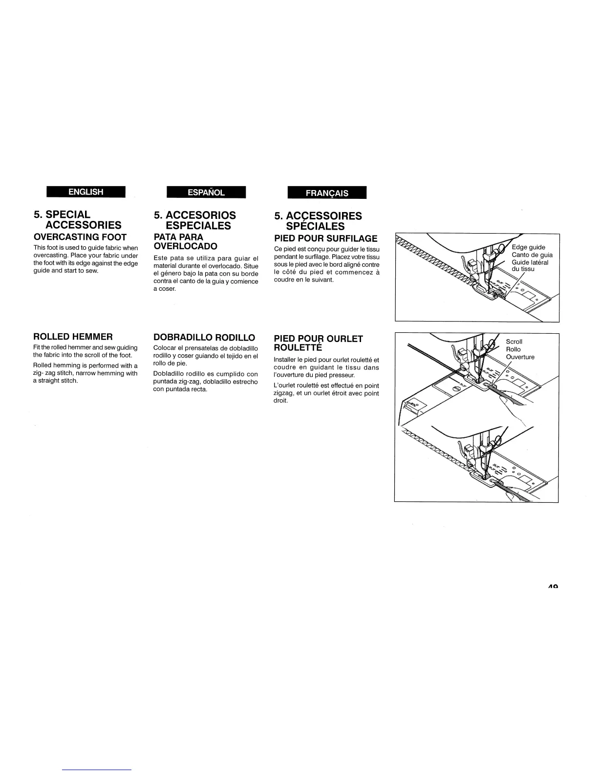 Singer 3962 - Special Accessories; Overcasting Foot; Rolled Hemmer