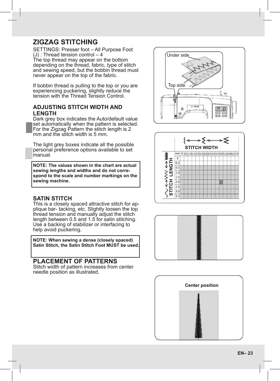ADJUSTING STITCH WIDTH AND
