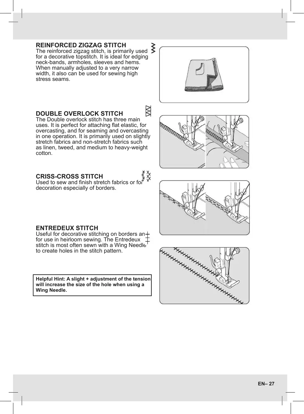 stitch is most often sewn with a Wing Needle