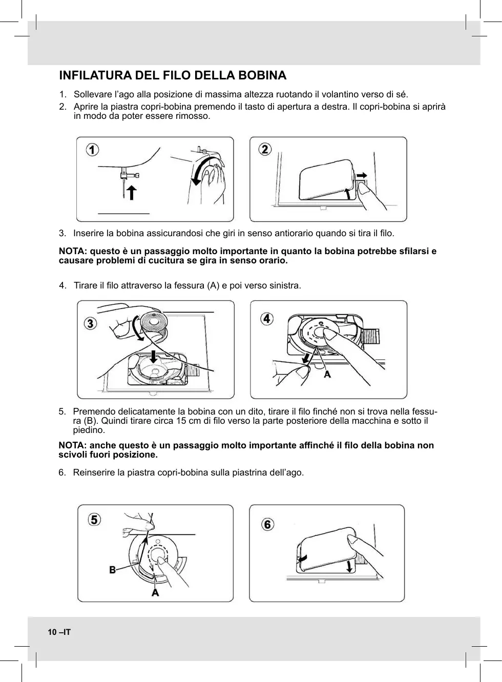 6. Reinserire la piastra copri-bobina sulla piastrina dell’ago.