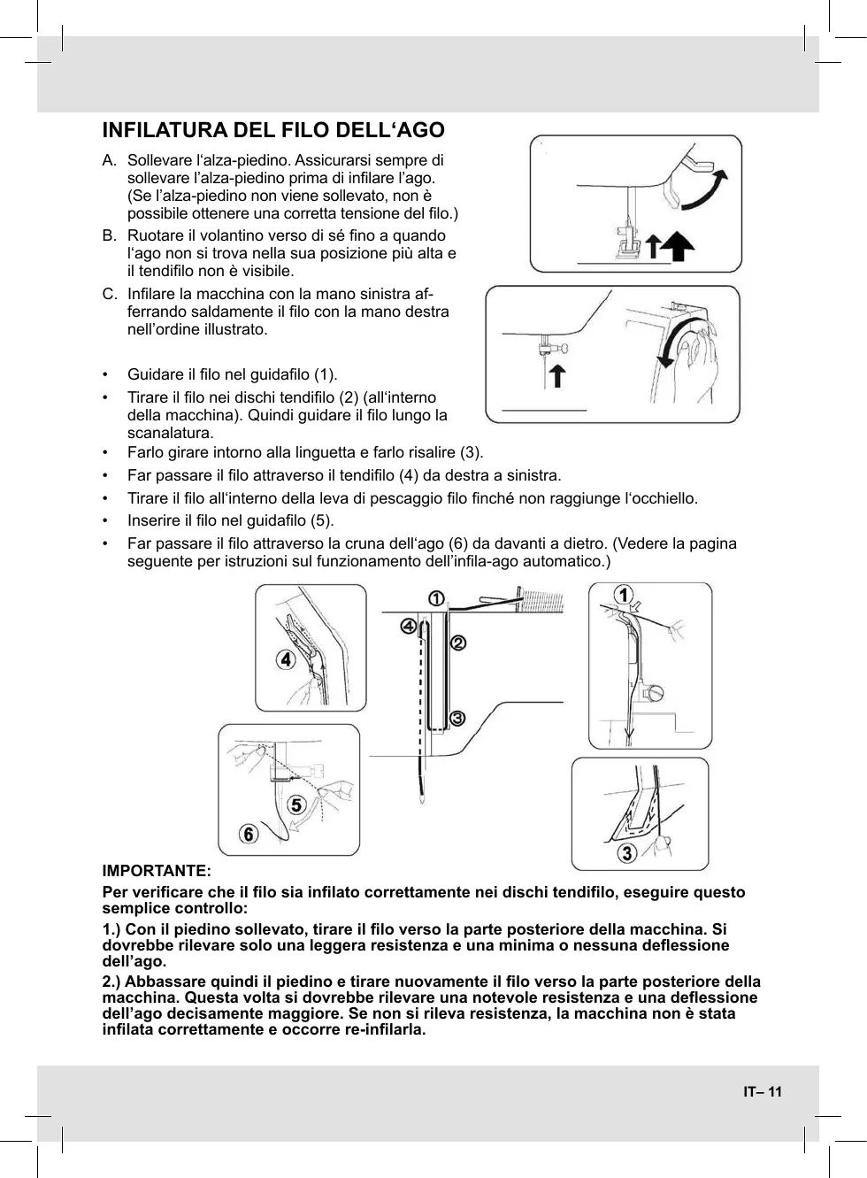 • Far passare il lo attraverso la cruna dell‘ago (6) da davanti a dietro. (Vedere la pagina