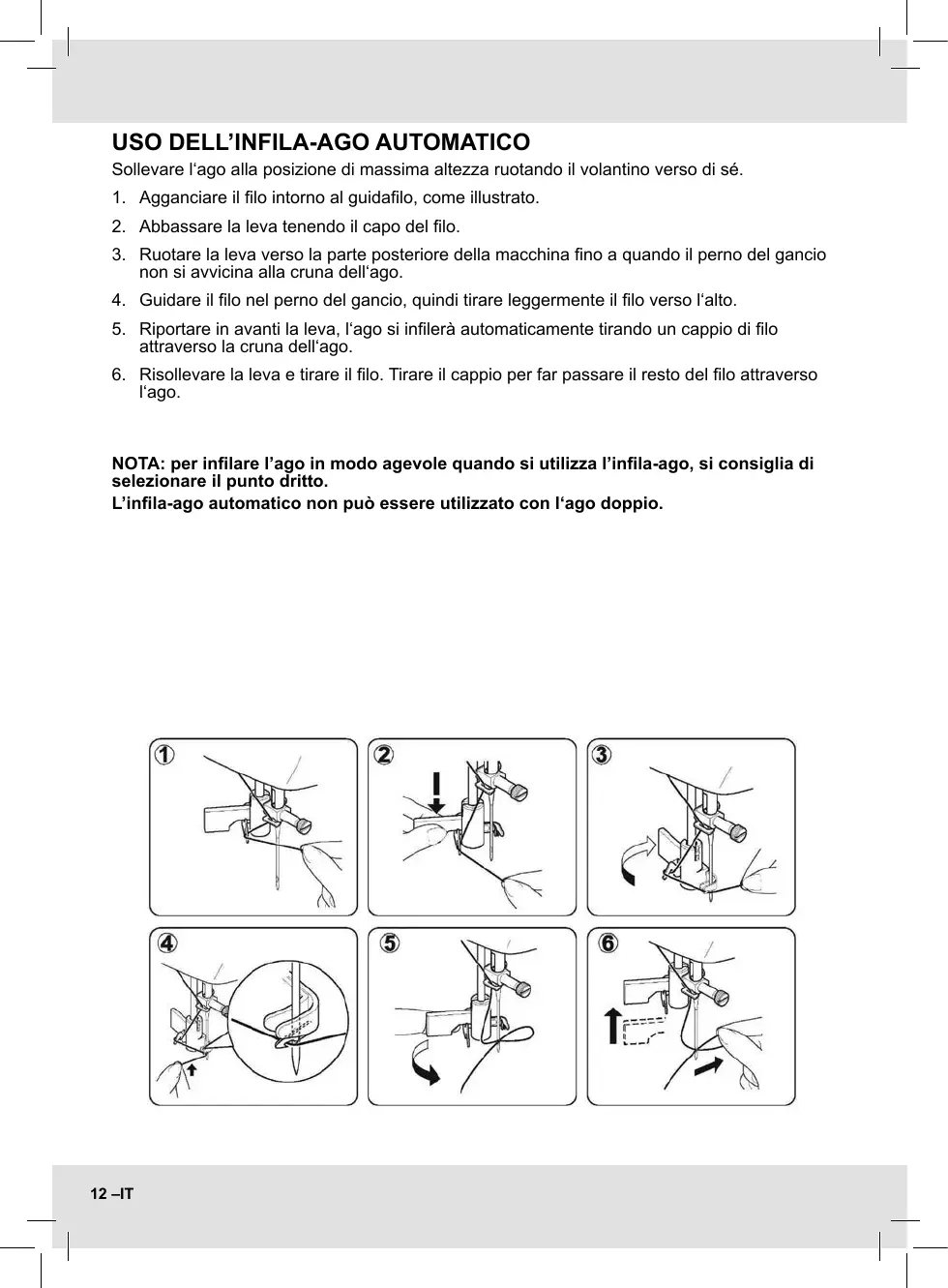 L’inla-ago automatico non può essere utilizzato con l‘ago doppio.