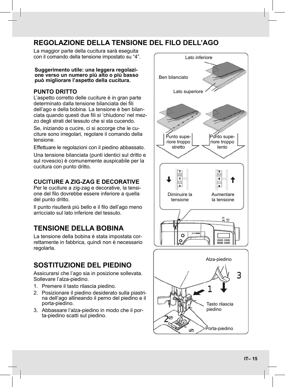 REGOLAZIONE DELLA TENSIONE DEL FILO DELL’AGO