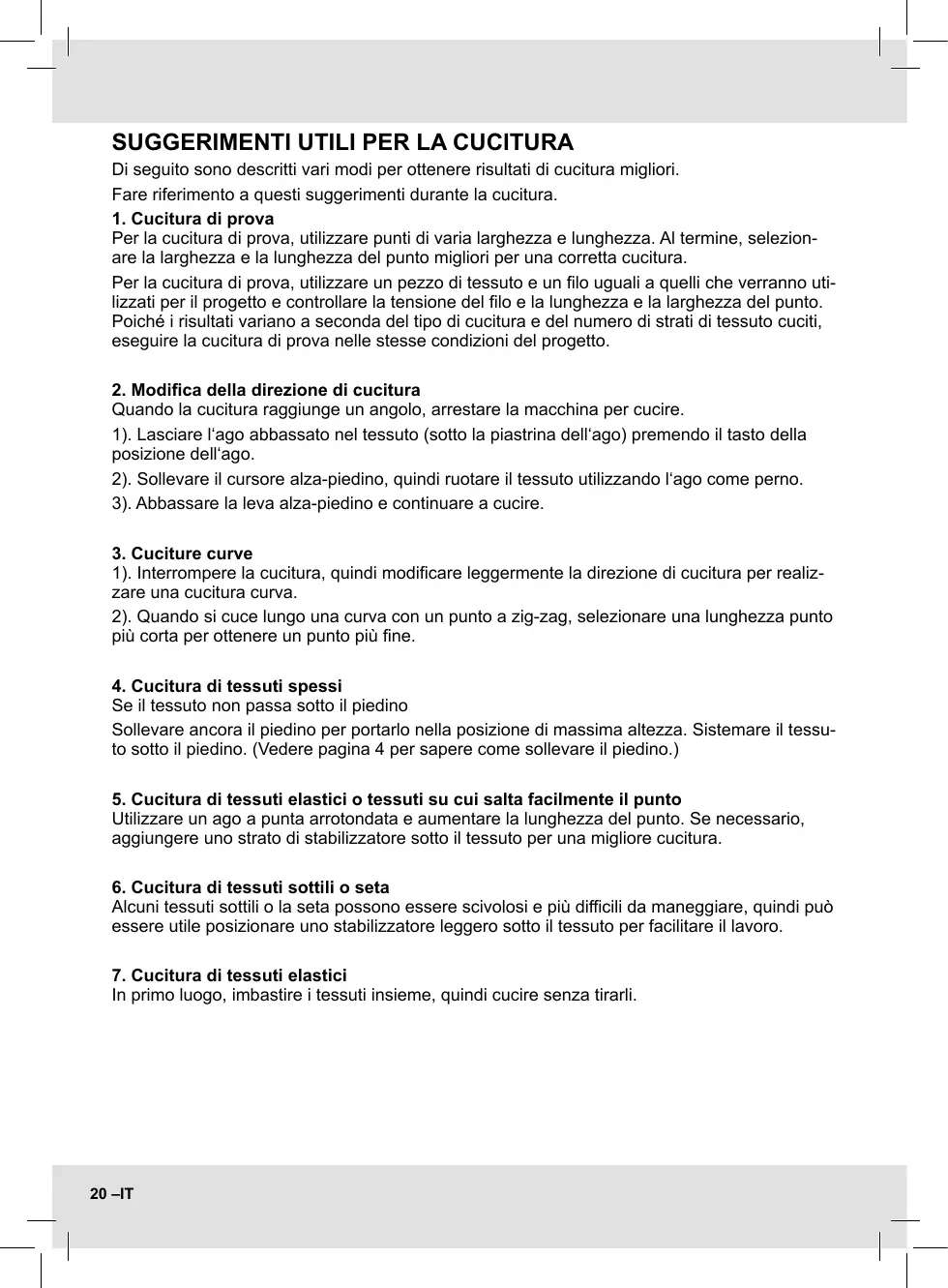 Di seguito sono descritti vari modi per ottenere risultati di cucitura migliori.