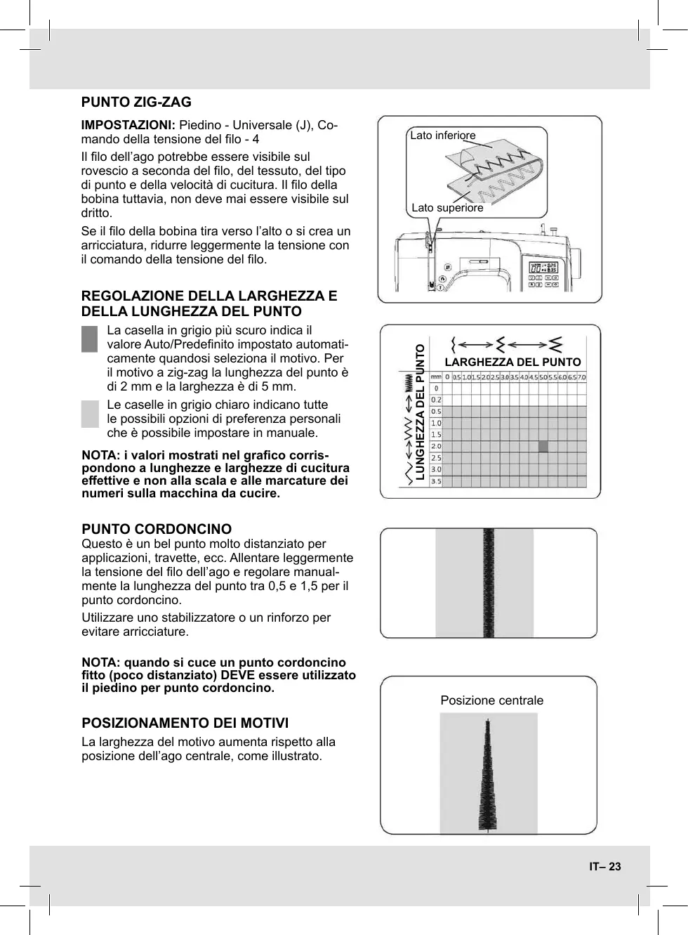 NOTA: quando si cuce un punto cordoncino