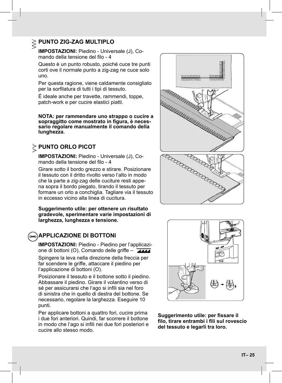 NOTA: per rammendare uno strappo o cucire a