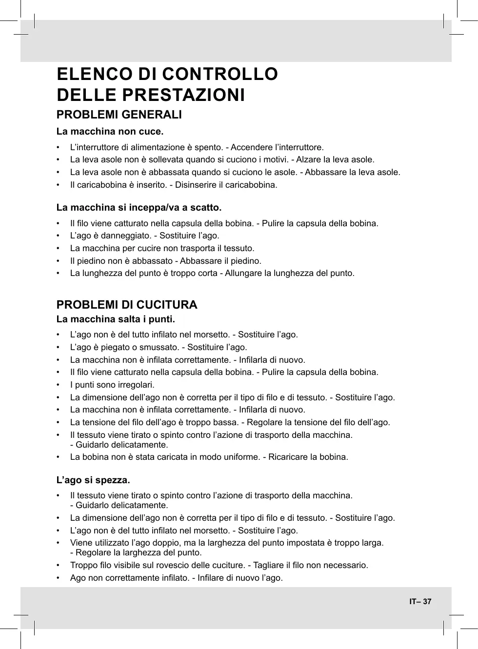 • Ago non correttamente inlato. - Inlare di nuovo l’ago.