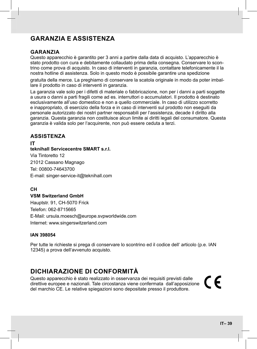 del marchio CE. Le relative spiegazioni sono depositate presso il produttore.
