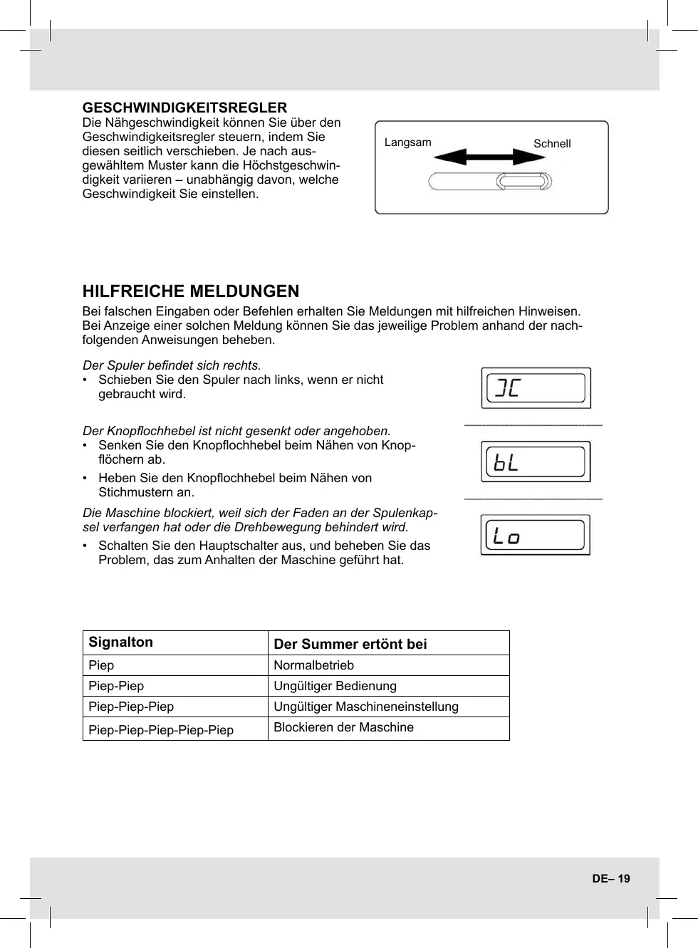Die Nähgeschwindigkeit können Sie über den