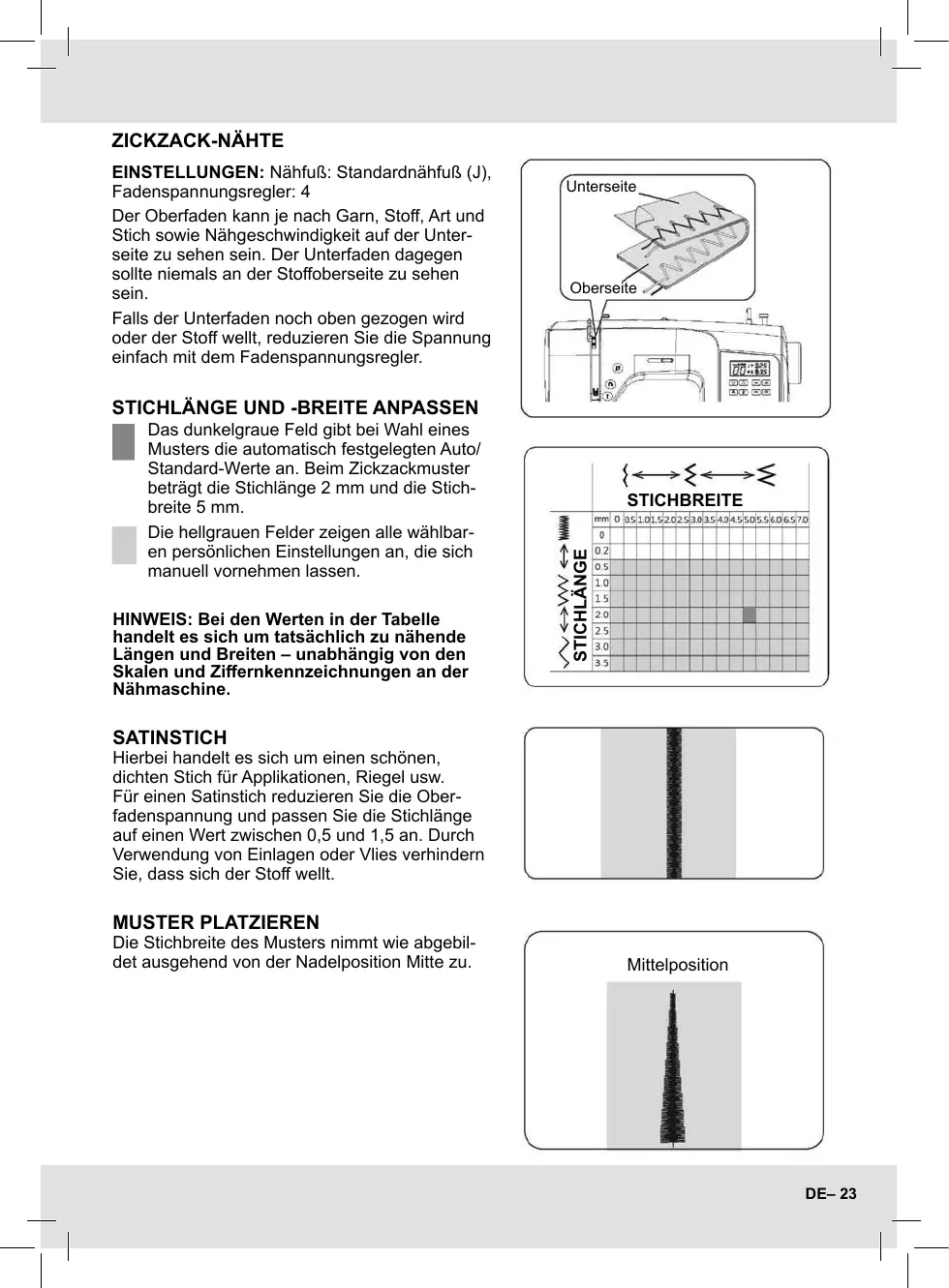 Stich sowie Nähgeschwindigkeit auf der Unter-