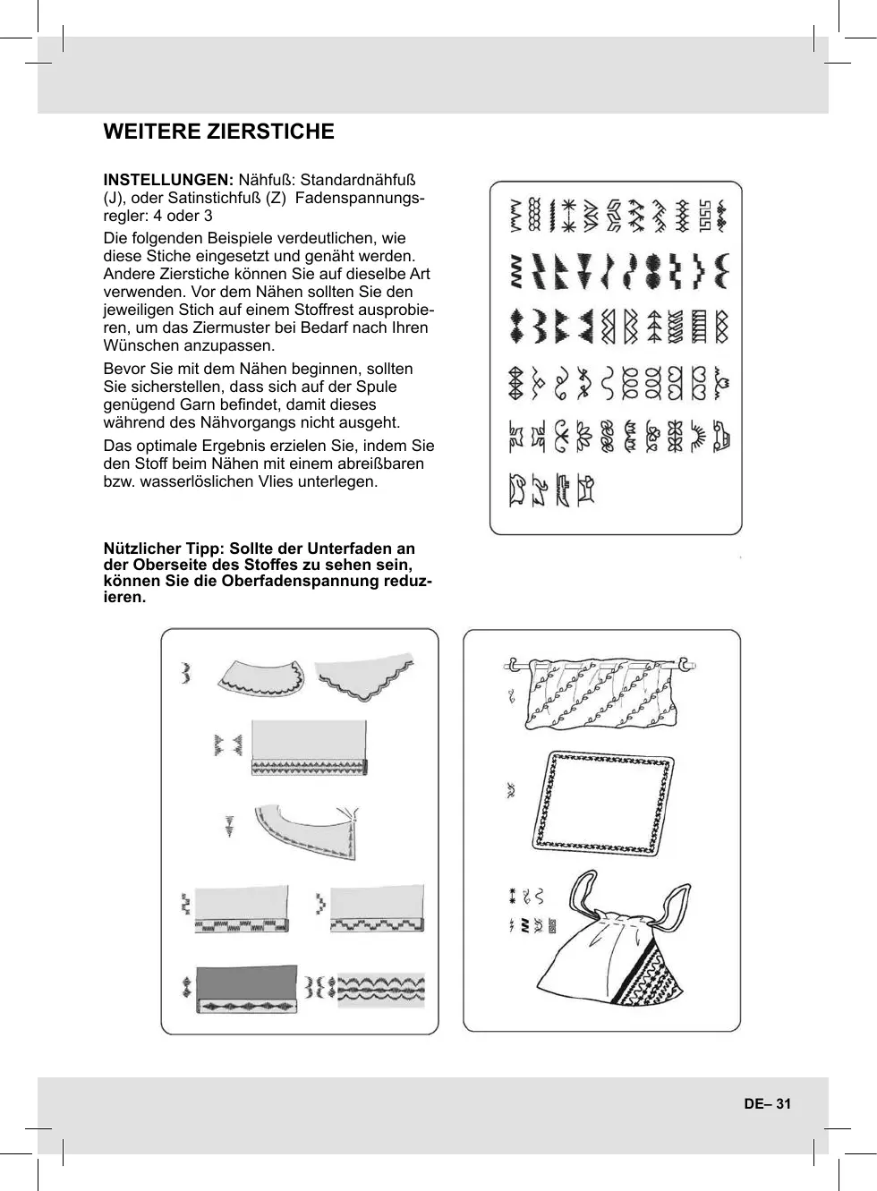 (J), oder Satinstichfuß (Z) Fadenspannungs