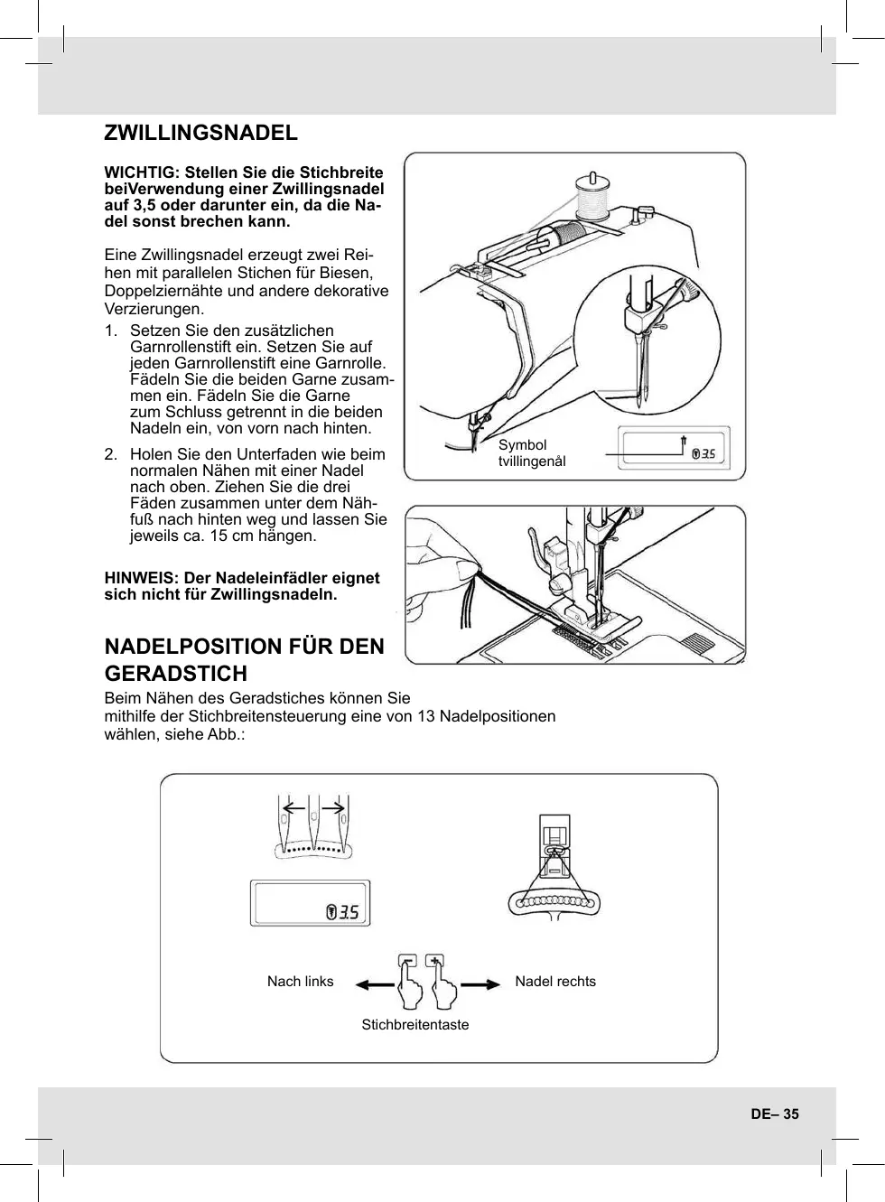 sich nicht für Zwillingsnadeln.