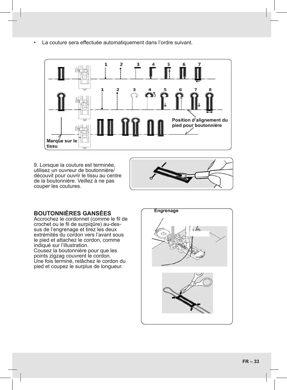 • La couture sera eectuée automatiquement dans l’ordre suivant.