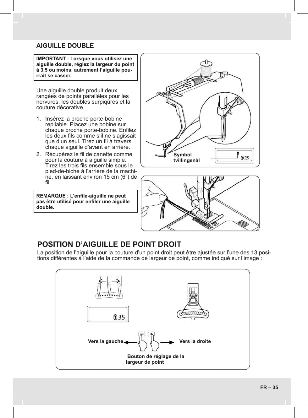 La position de l’aiguille pour la couture d’un point droit peut être ajustée sur l’une des 13 posi