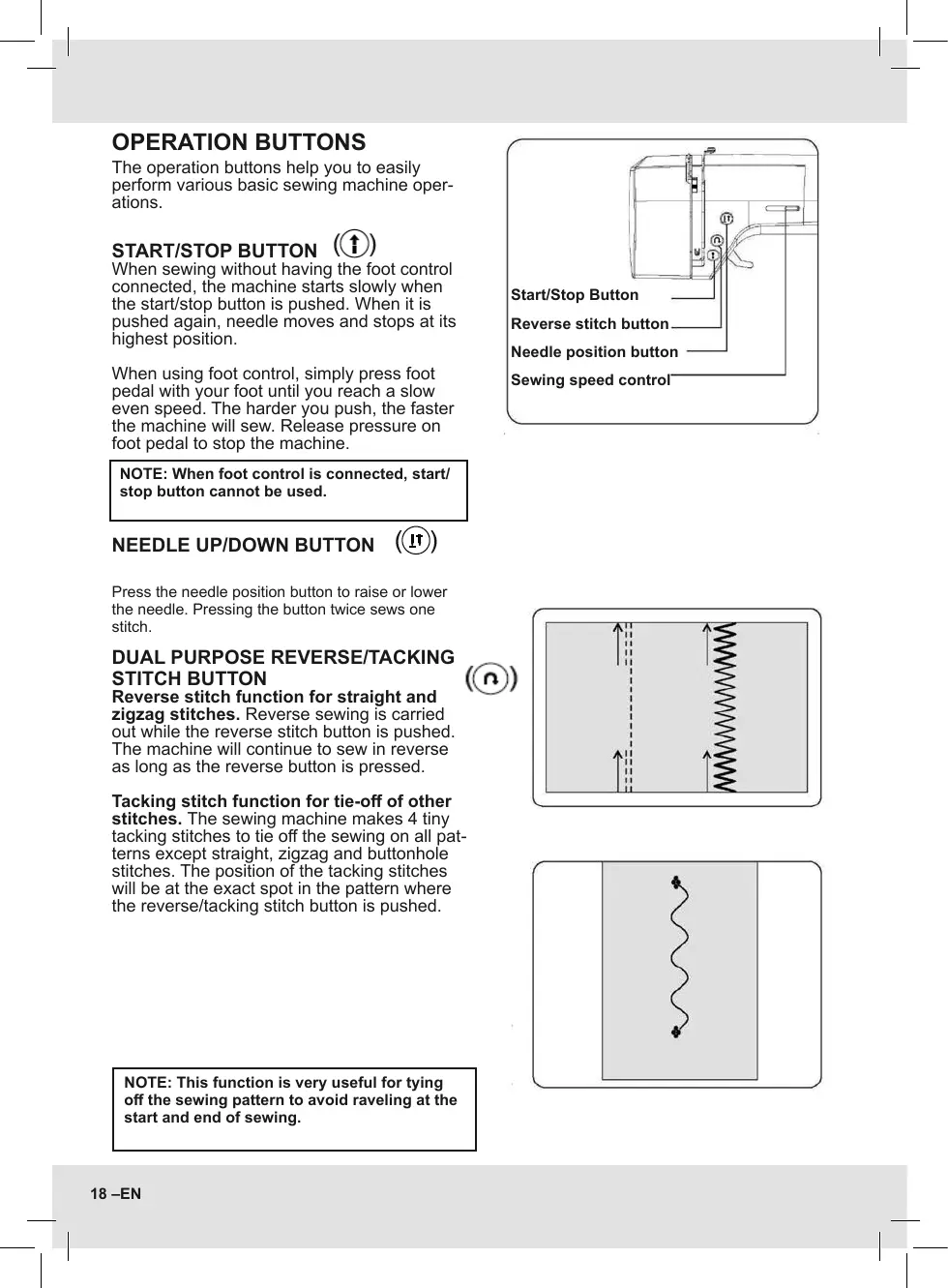 zigzag stitches. Reverse sewing is carried