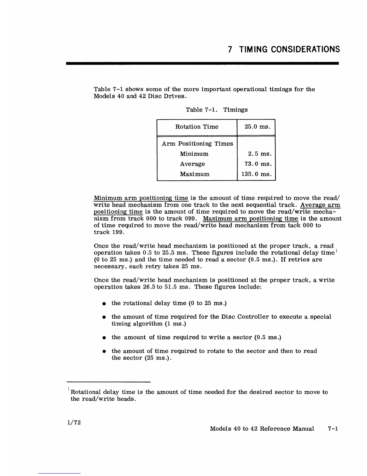 Singer 40 - Disc Drive Timing and Performance; Key Operational Timings