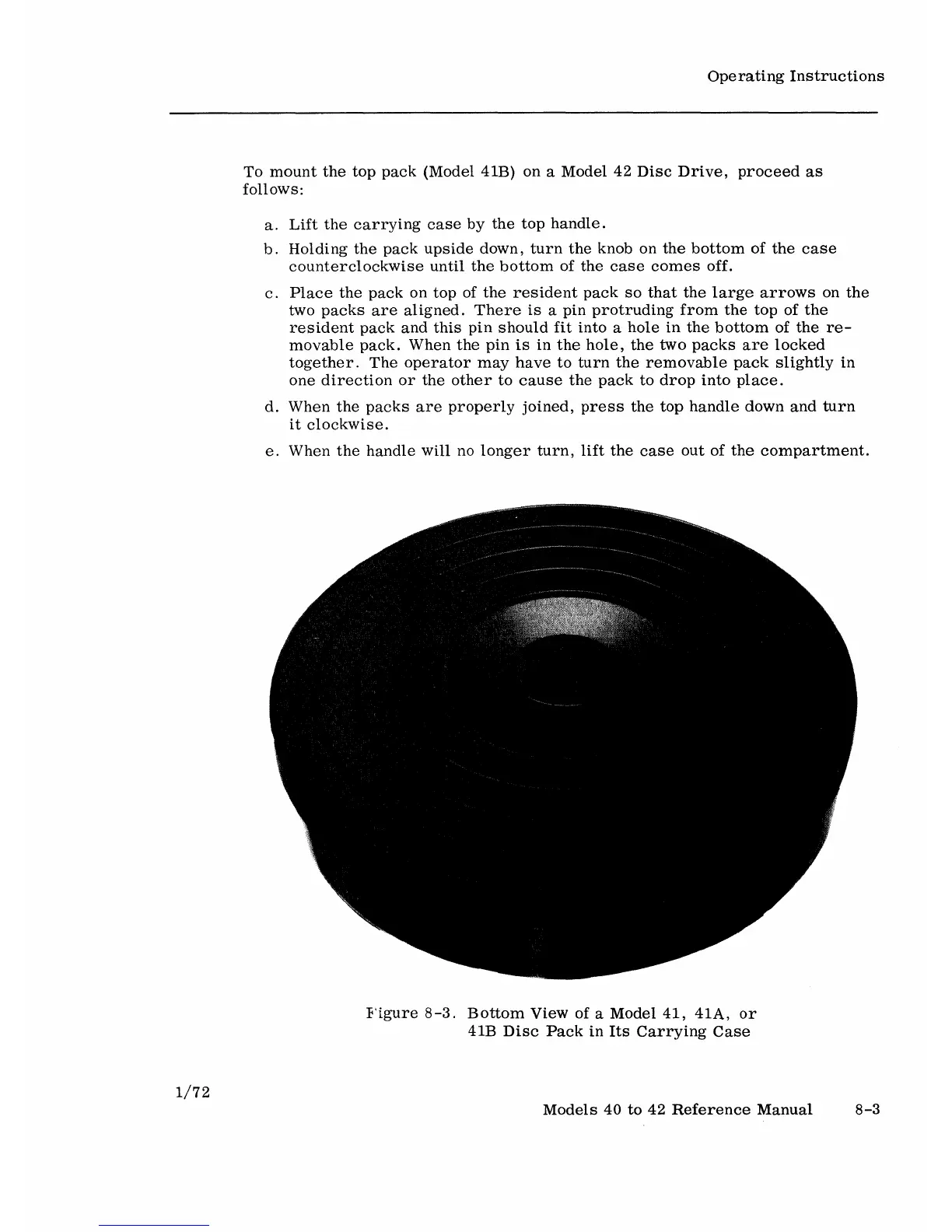 Singer 40 - Disc Pack Mounting Procedures - Model 42 Top Pack; Mounting Model 41 B Disc Pack on Model 42