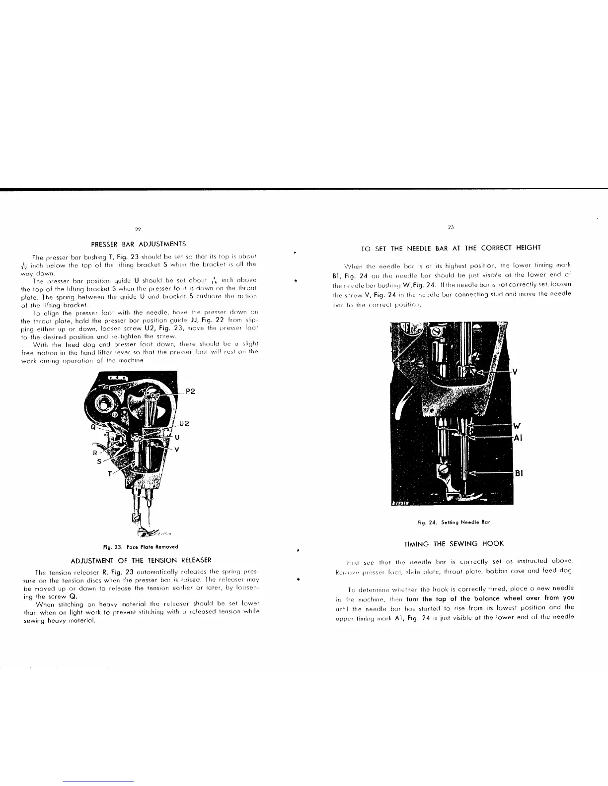 Singer 400W1 - Presser Bar and Needle Bar Adjustments; Setting Presser Bar Bushing and Guide; Aligning Presser Foot to Needle; Adjusting Tension Releaser