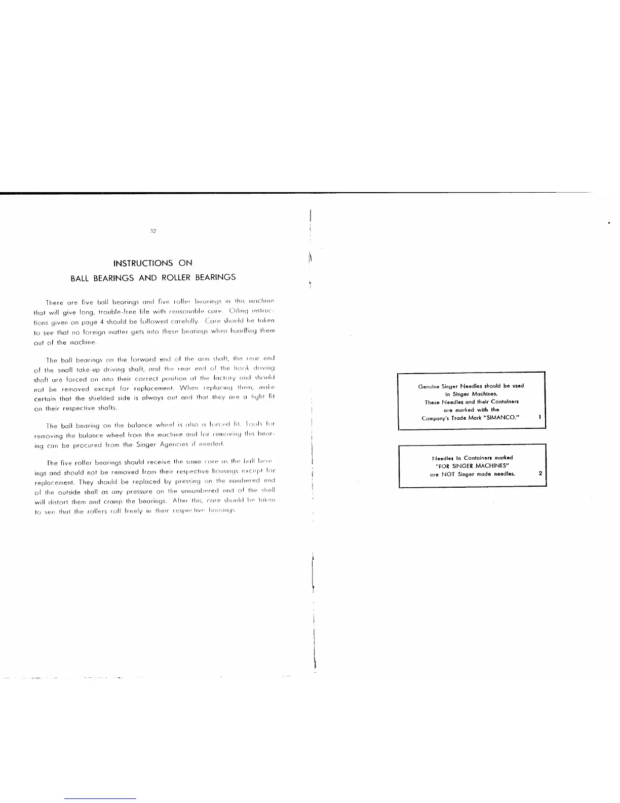 Singer 400W1 - Bearings and Genuine Parts; Ball and Roller Bearing Care; Identifying Genuine Singer Parts