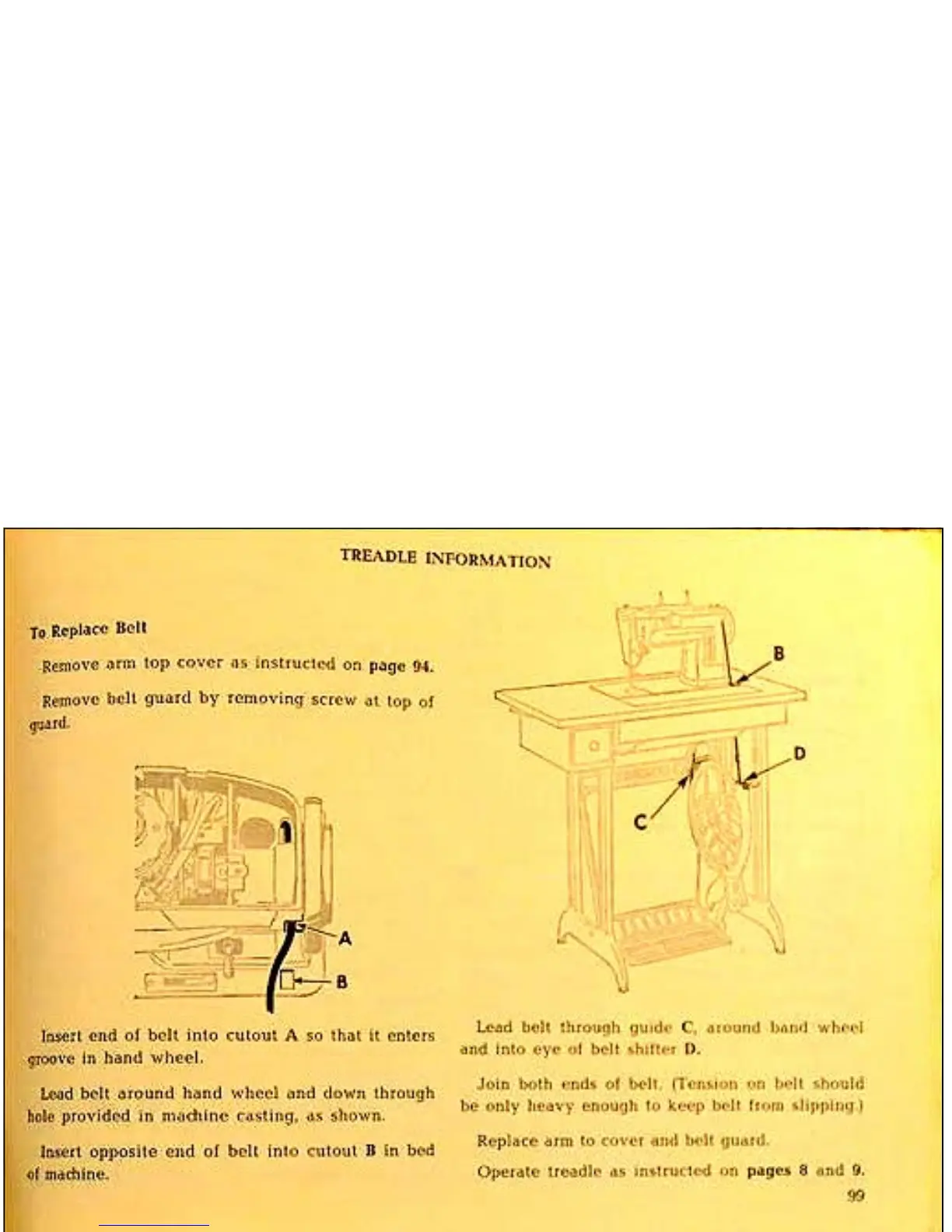 Singer 411 - Treadle Information; Replacing the Treadle Belt