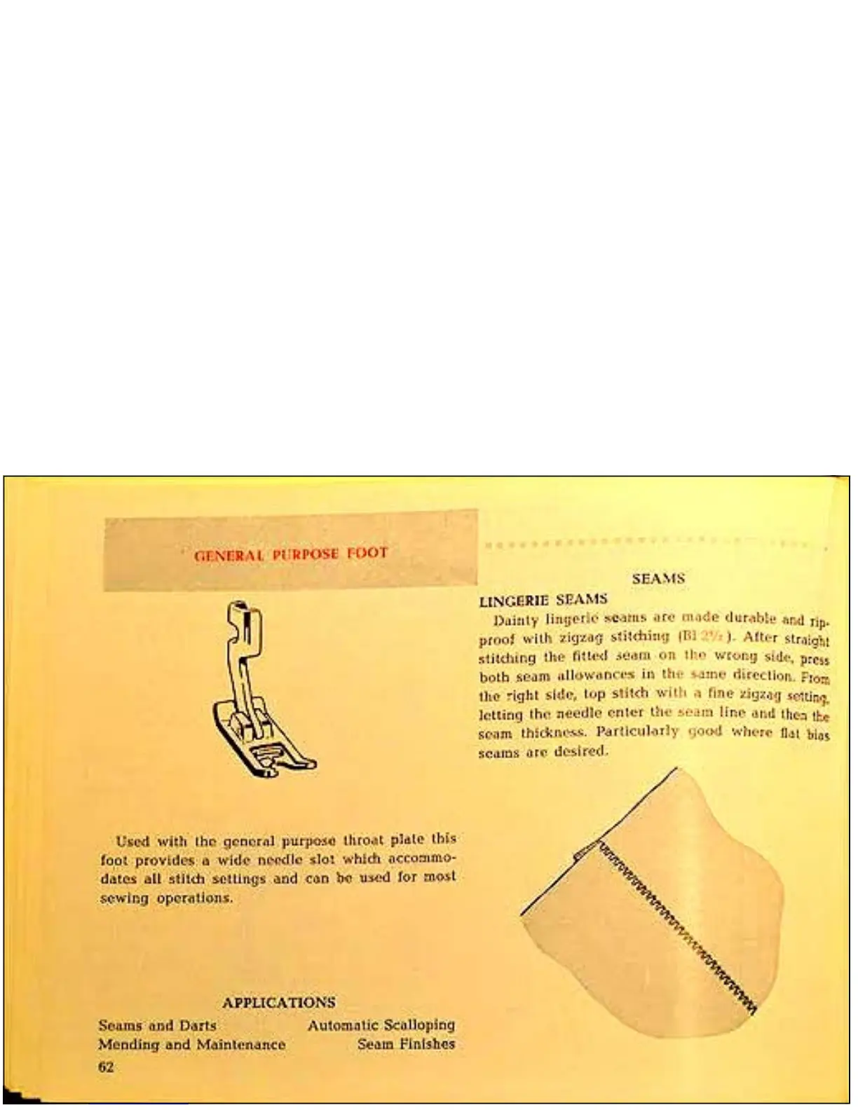 Singer 411 - General Purpose Foot; Applications of General Purpose Foot