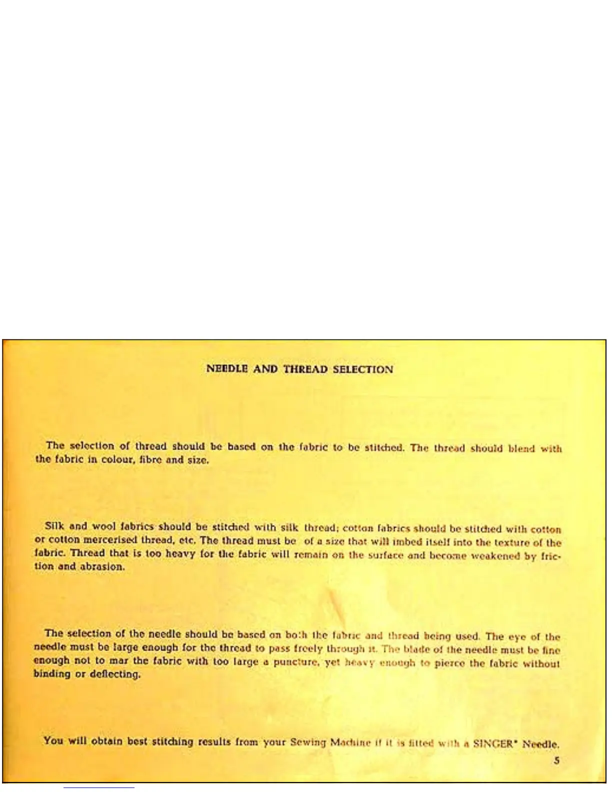 Singer 411 - Needle and Thread Selection; Thread Selection Guidelines; Needle Selection Guidelines