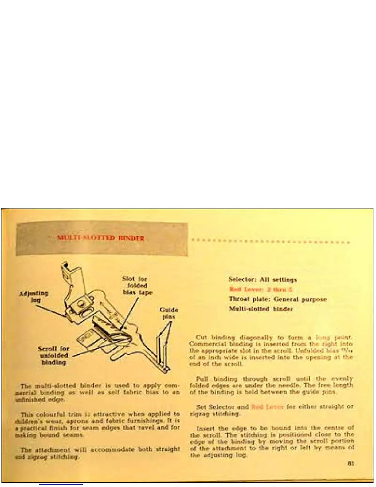 Singer 411 - Multi-Slotted Binder Attachment; Using the Multi-Slotted Binder