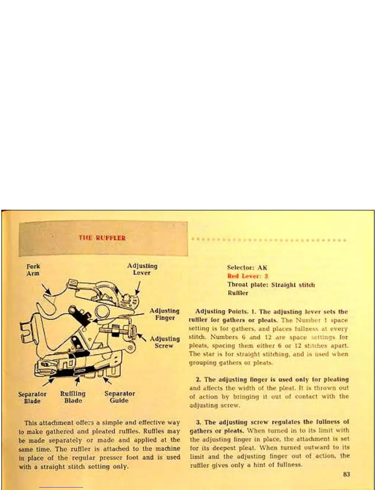 Singer 411 - The Ruffler Attachment; Ruffler Adjusting Points