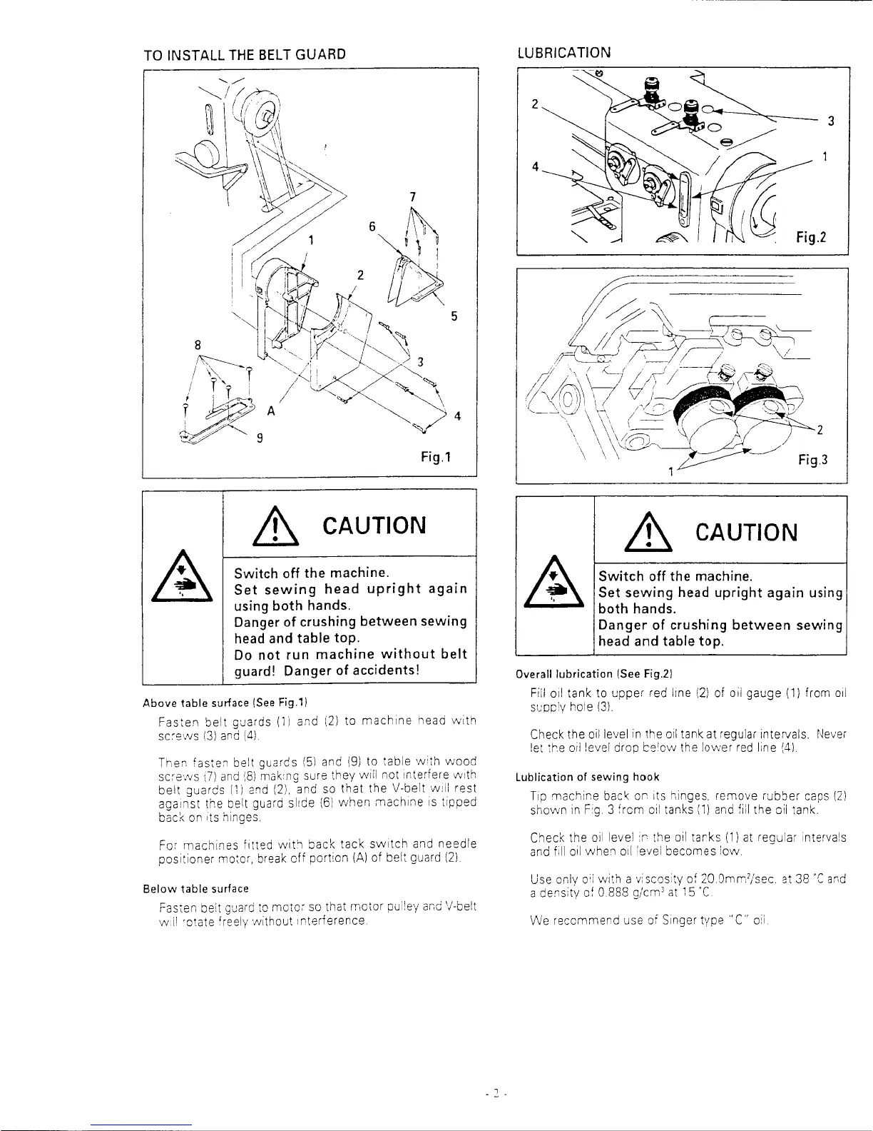 Singer 412U - To Install the Belt Guard; Overall Lubrication; Lubrication of Sewing Hook