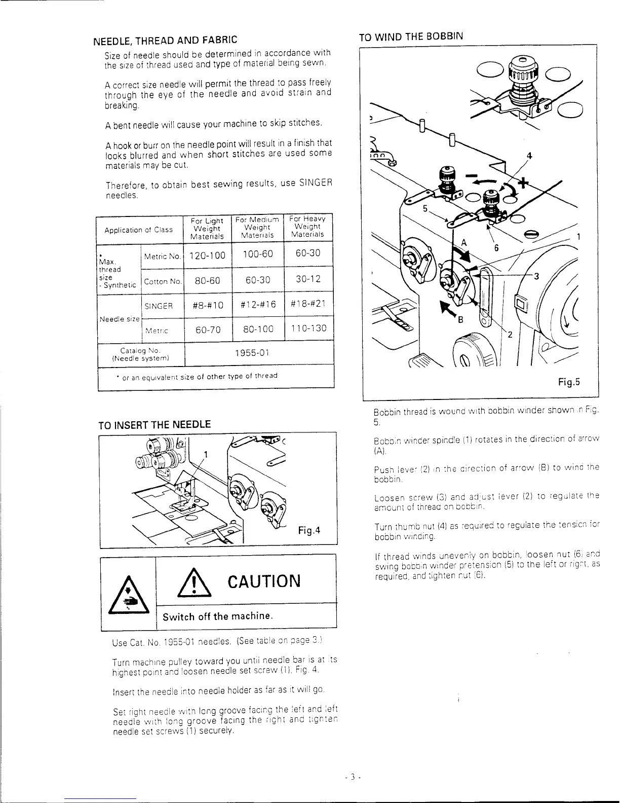 Singer 412U - TO INSERT THE NEEDLE; TO WIND THE BOBBIN