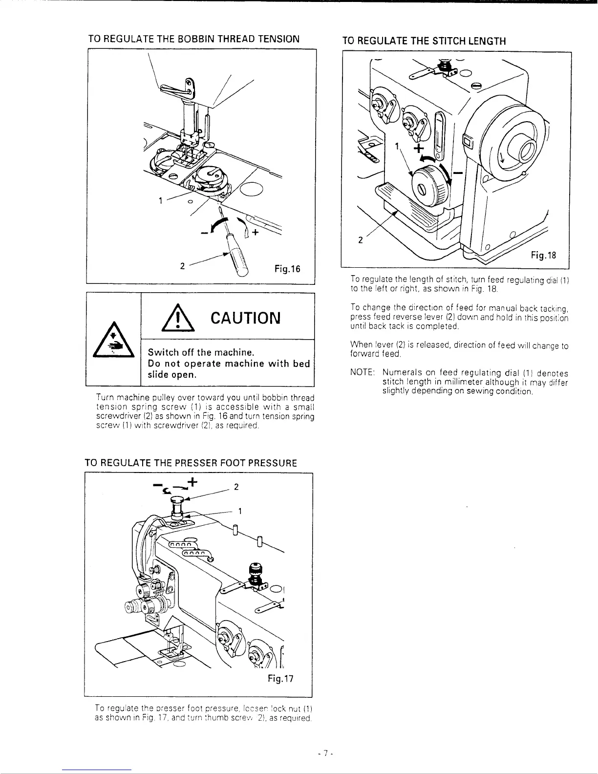 Singer 412U - TO REGULATE THE BOBBIN THREAD TENSION; TO REGULATE THE STITCH LENGTH; TO REGULATE THE PRESSER FOOT PRESSURE