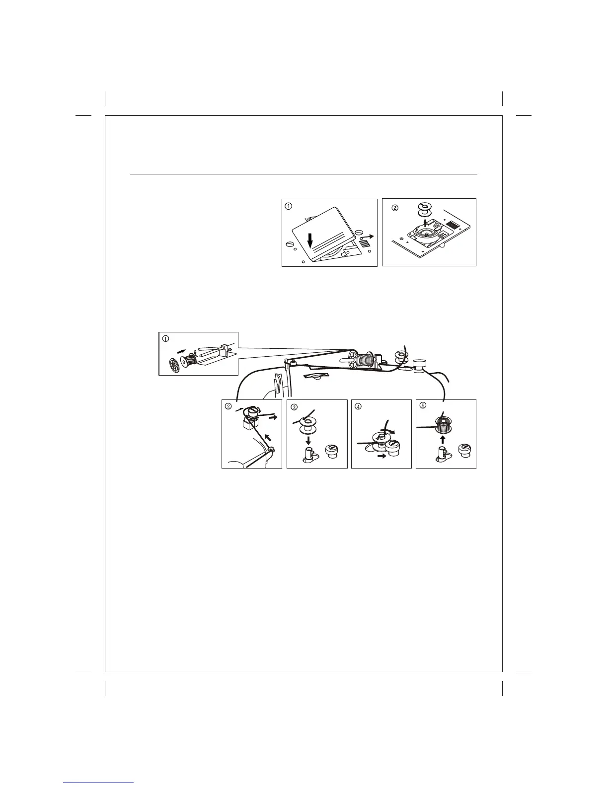 3 .Faire passer le fil hors de la canette et le faire passer dans le guide-fil, comme sur